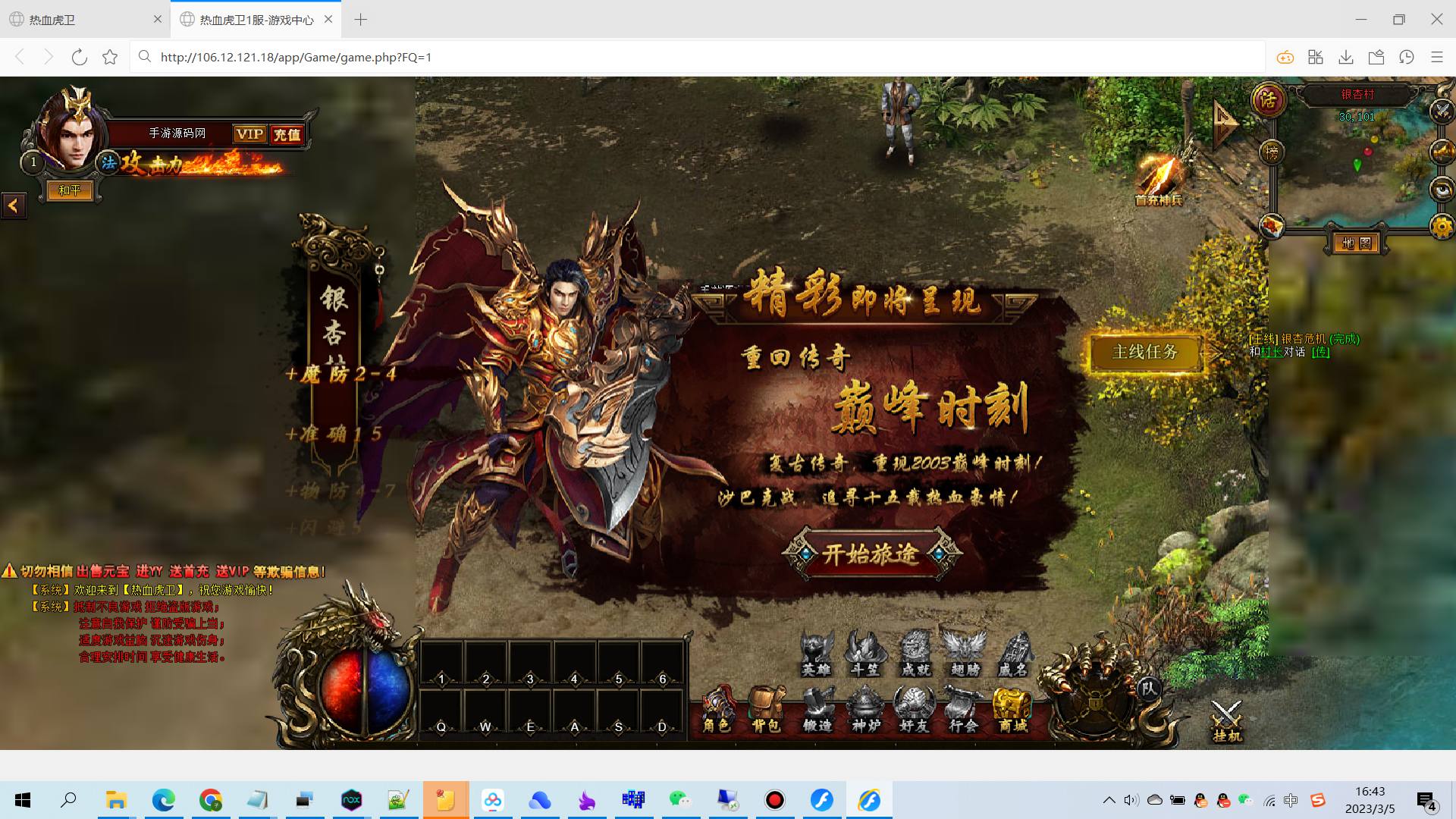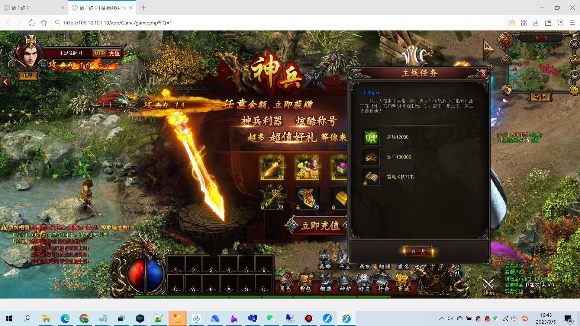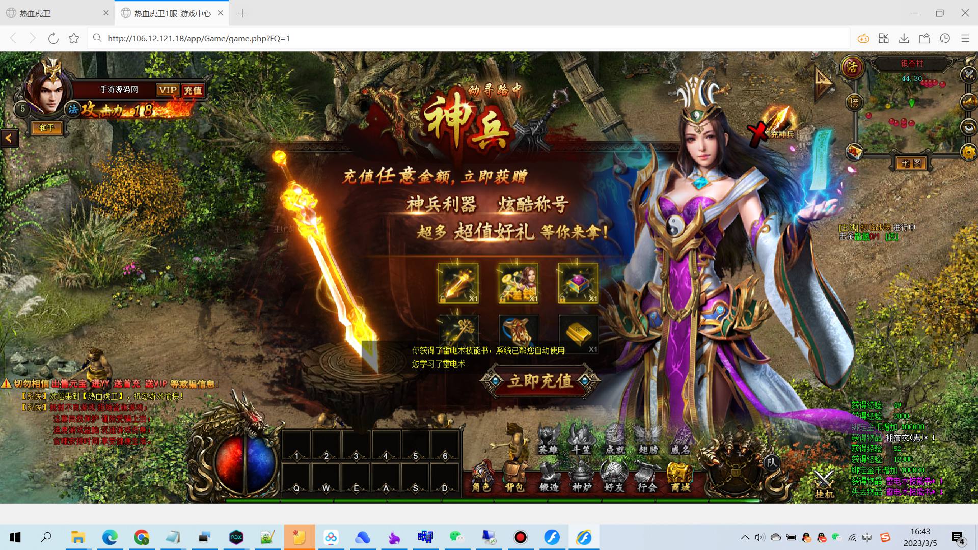 【传奇页游热血虎卫】大型角色扮演类PK传奇手游-2023年3月5日全新打包win服务端源码视频架设教程-完善GM充值后台!