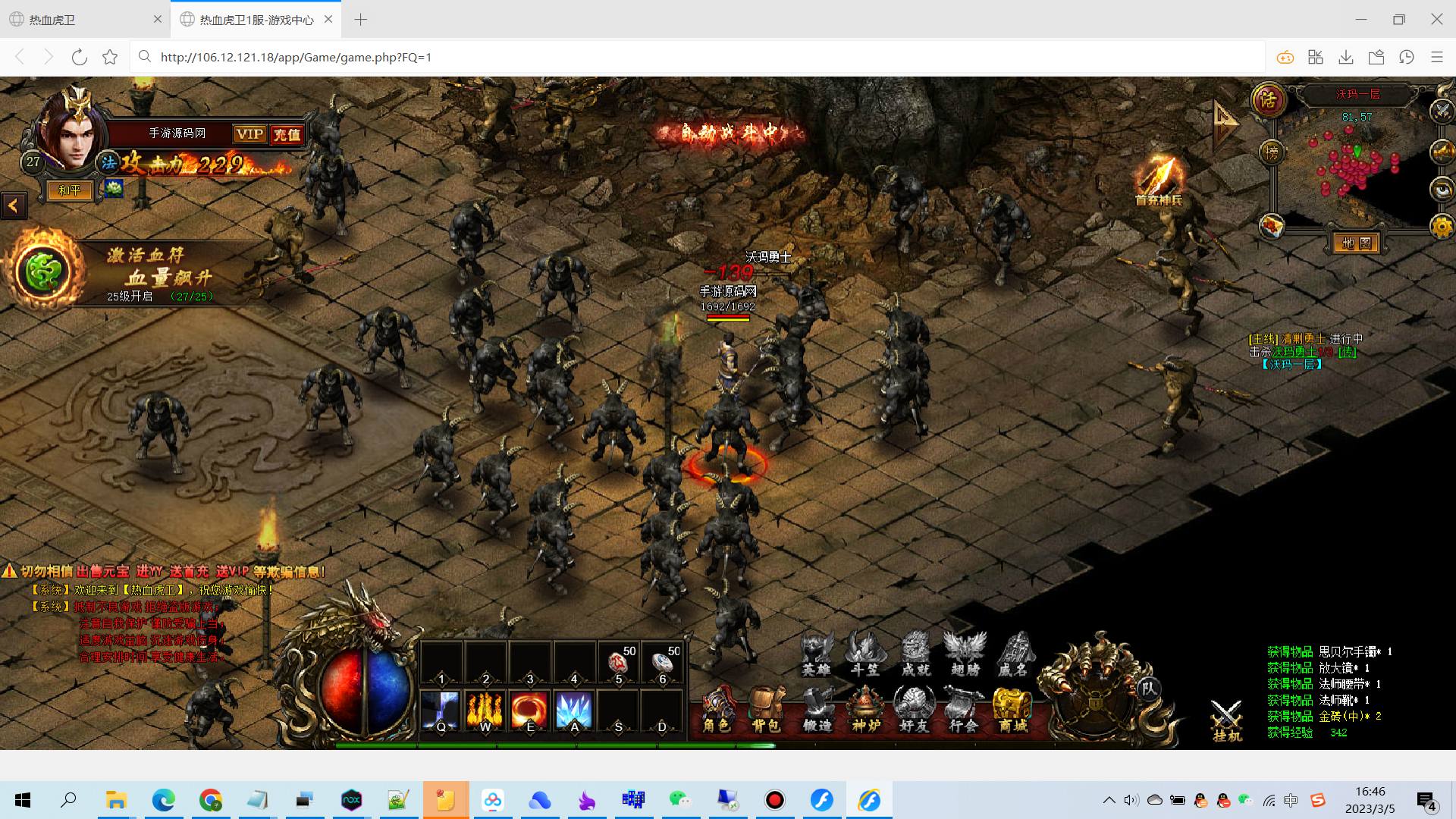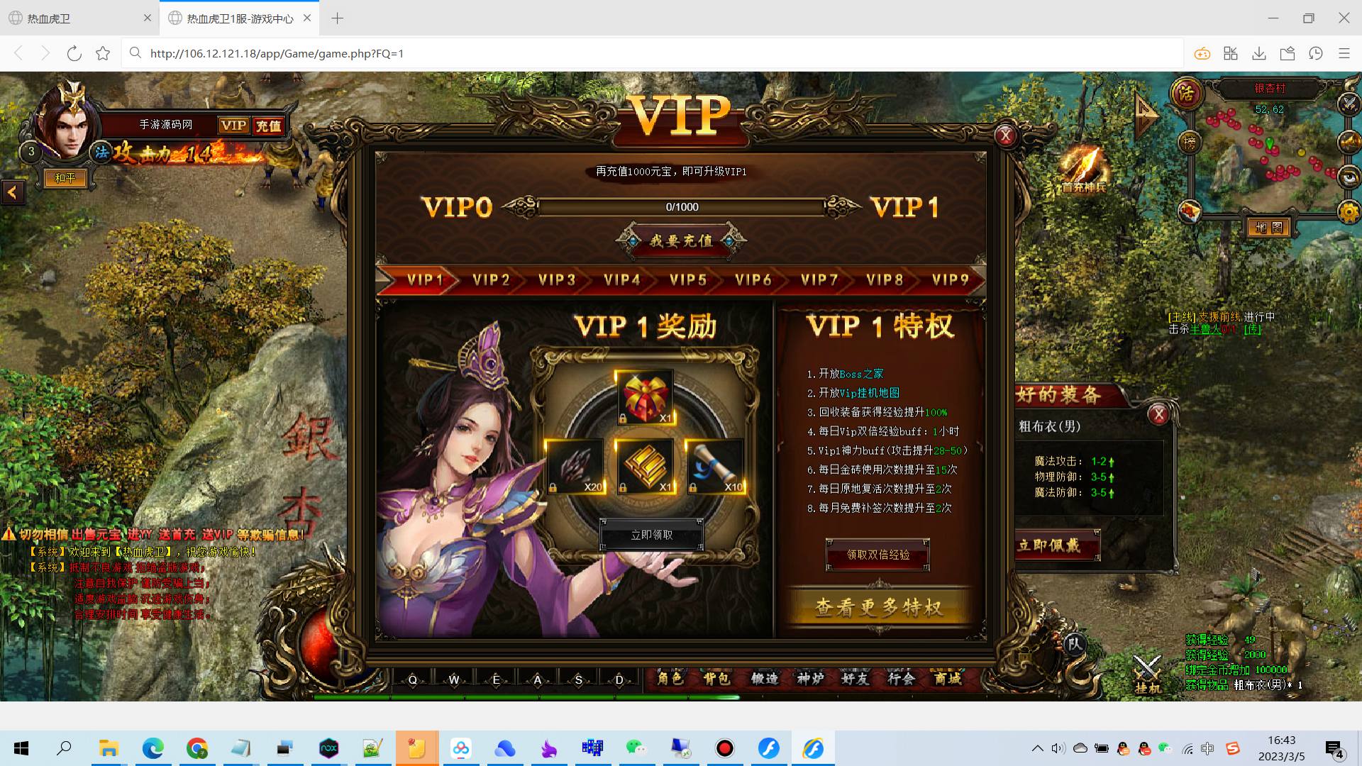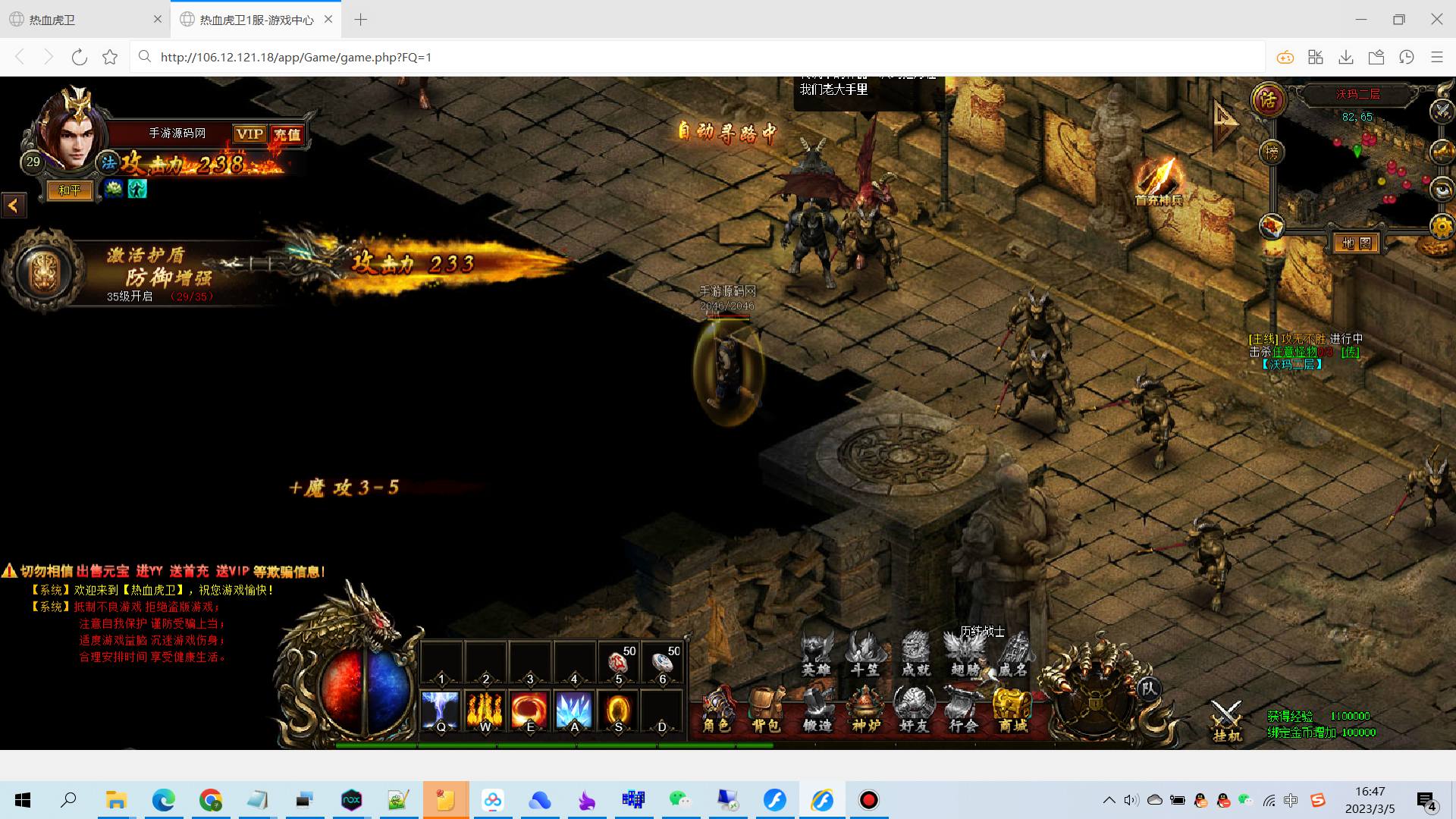 【传奇页游热血虎卫】大型角色扮演类PK传奇手游-2023年3月5日全新打包win服务端源码视频架设教程-完善GM充值后台!