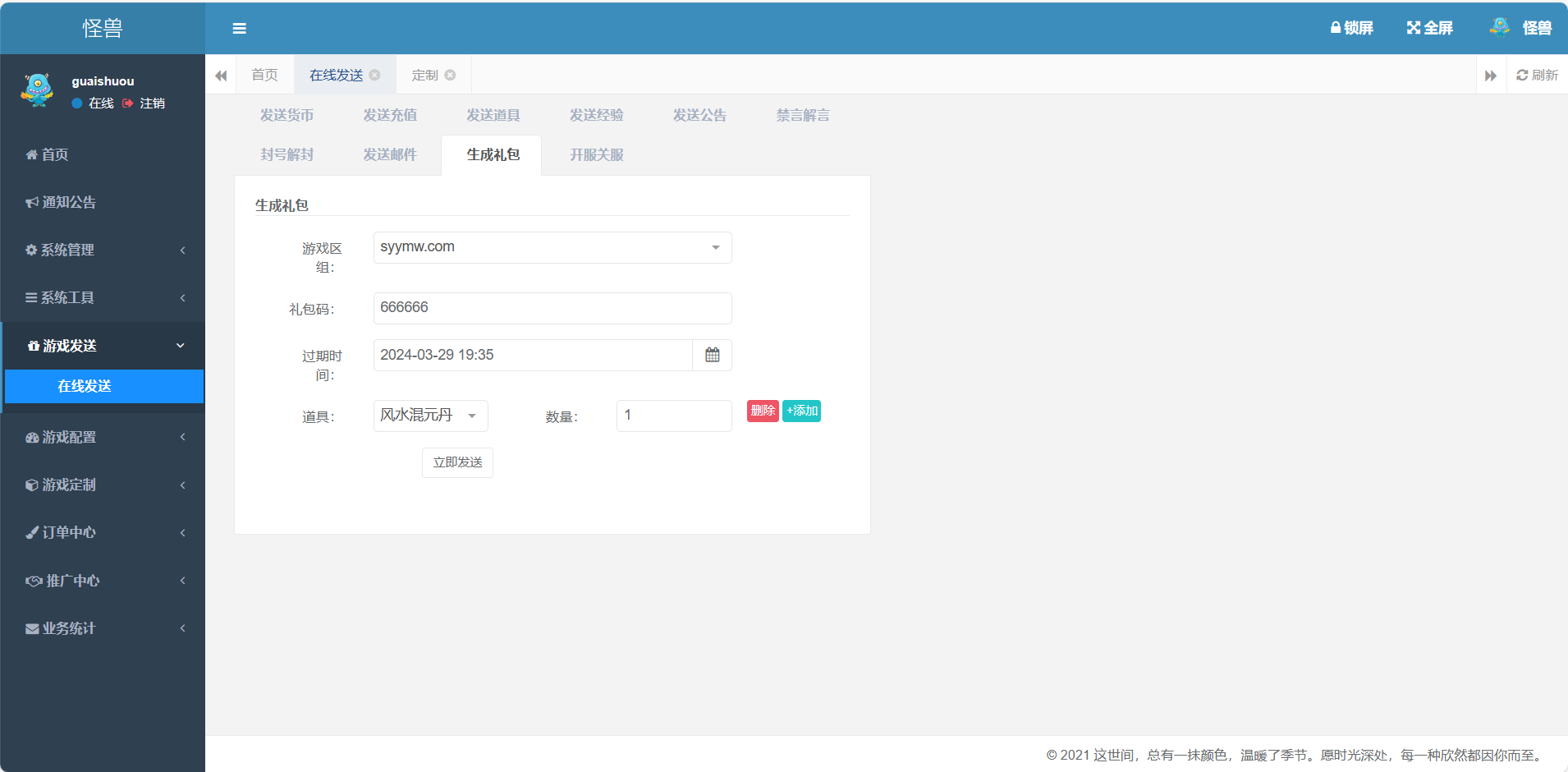 3、增加定制后台