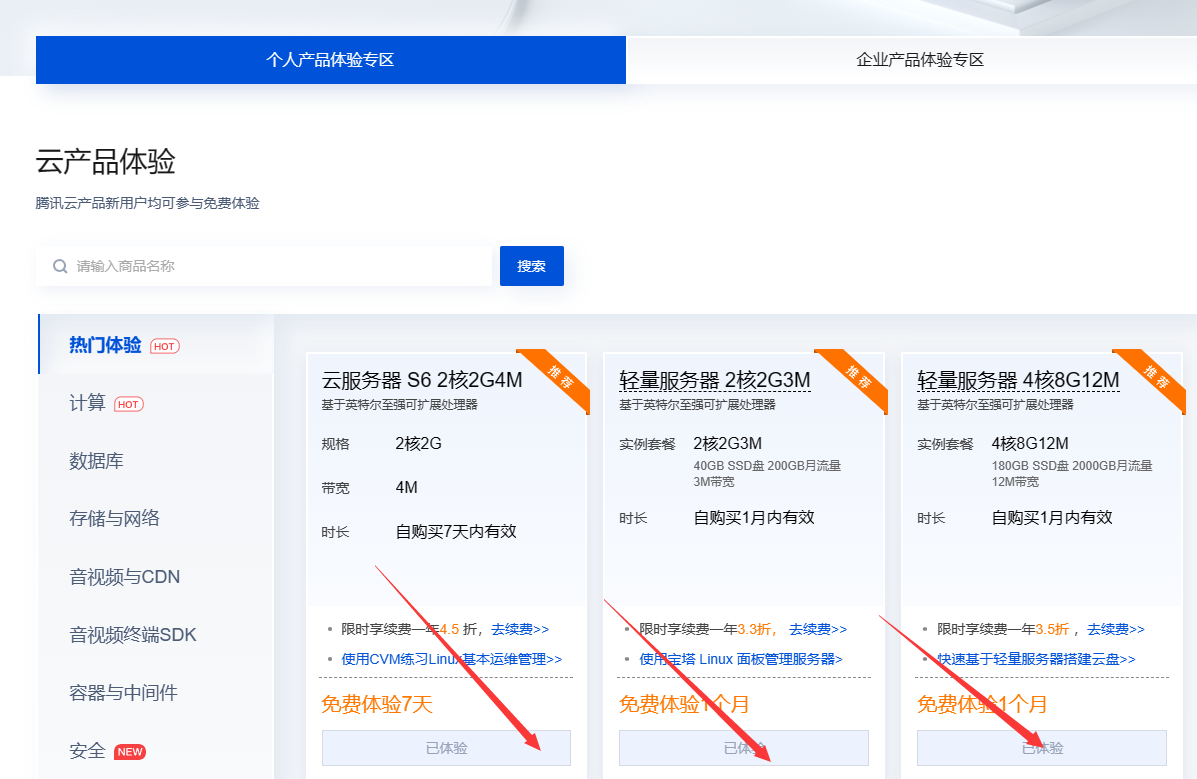 然后腾讯云只有新用户有第一次优惠,所以你只有一次机会去选择免费的还是付费的,否则后续很贵。