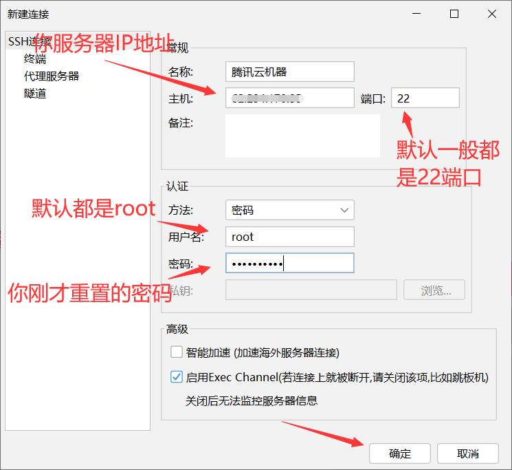 2.配置好以后双击你刚才创建的配置会自动连接你的腾讯云服务器