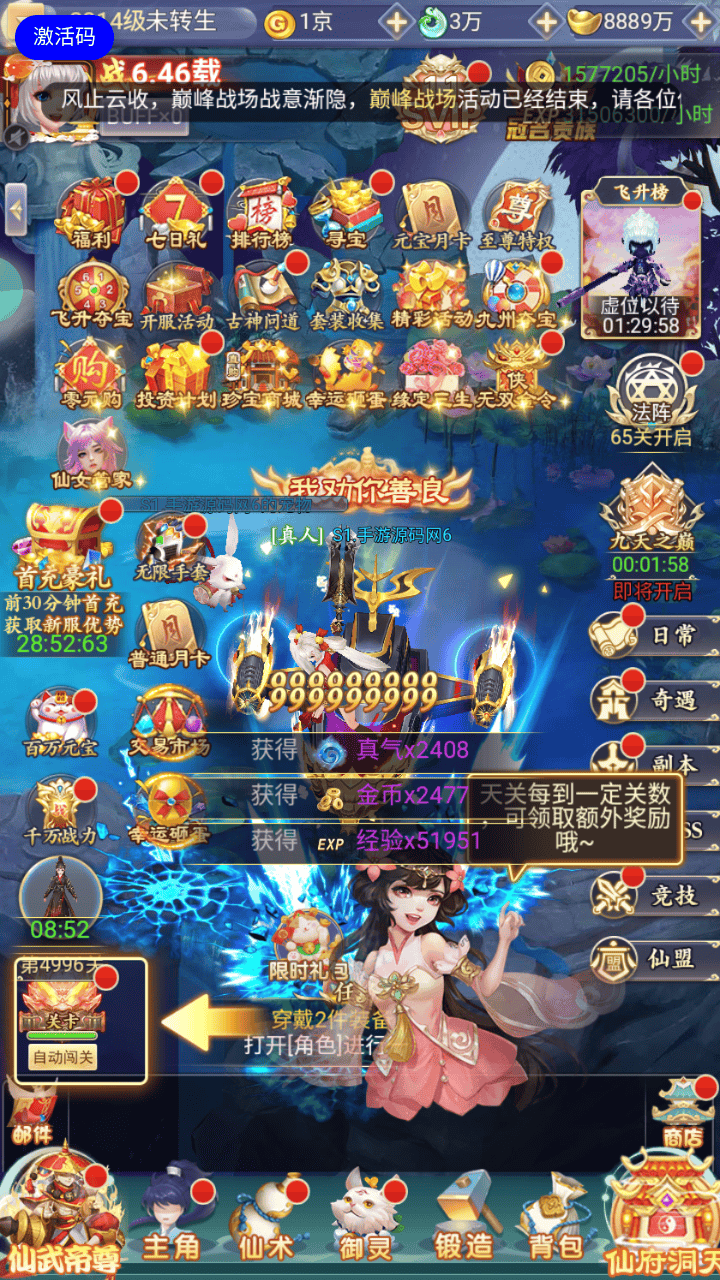 【九州九天剑录仙女管家四神器内购版-附带转表工具】经典三网H5仙侠类闯关手游-2026年4月9日最新单机一键镜像-打包linux服务端源码视频架设教程-管理后台-多功能GM授权后台-简易安卓APK客户端!